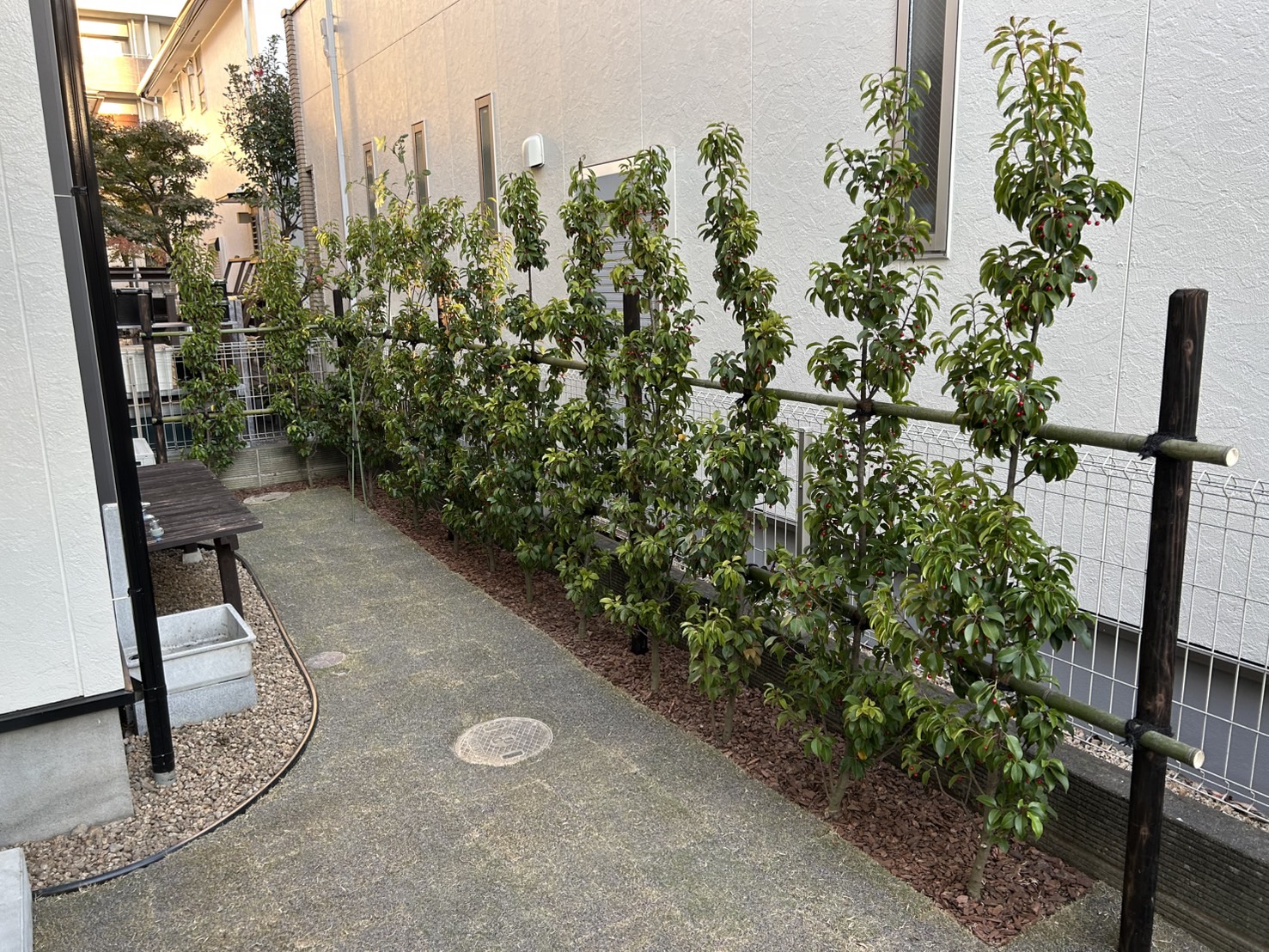 お施主様のお庭は、比較的日陰になる時間帯が長い為、日陰でも美しく育つソヨゴは条件が最適かと思います。